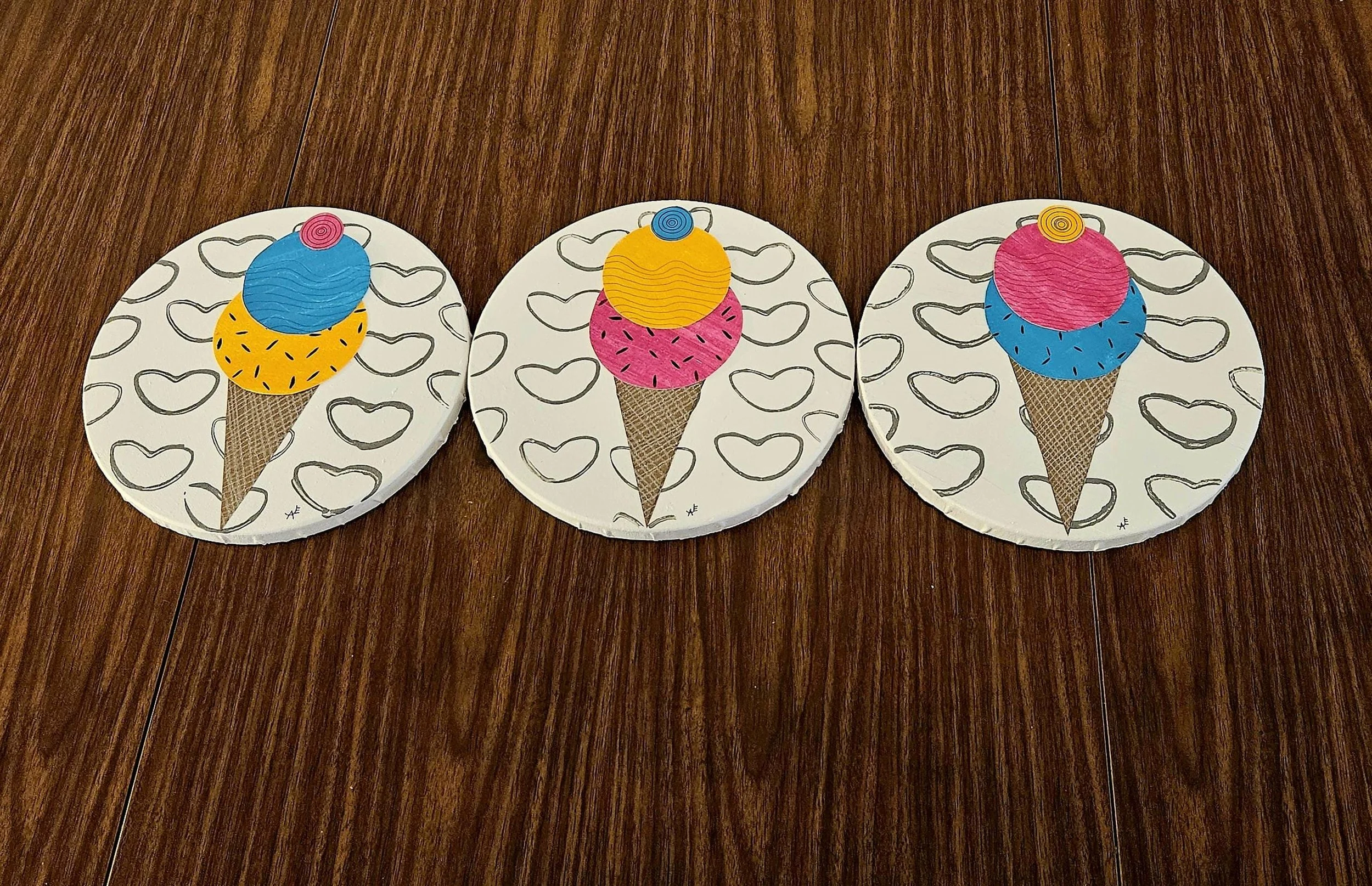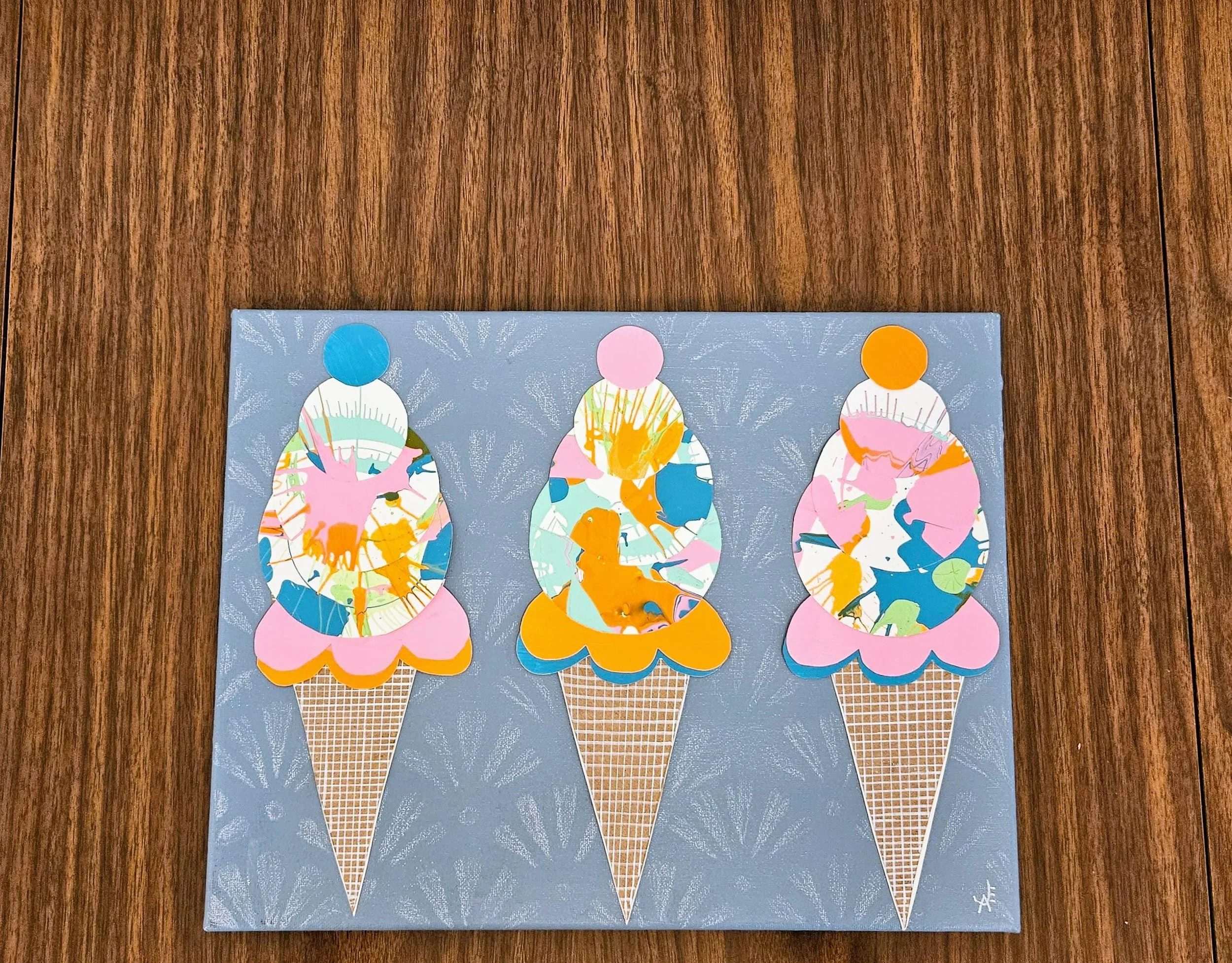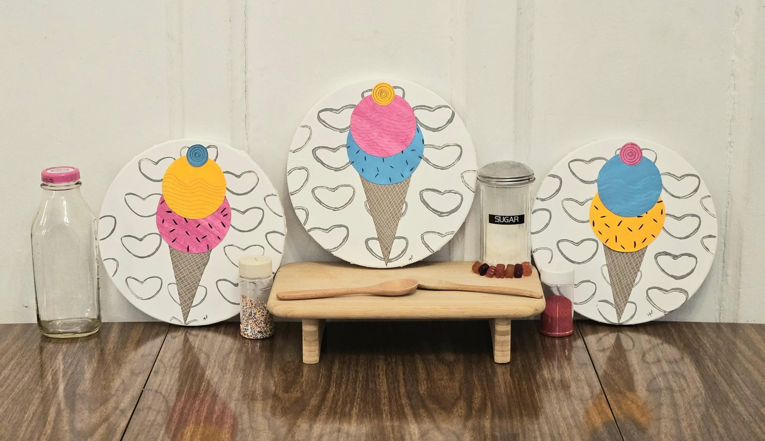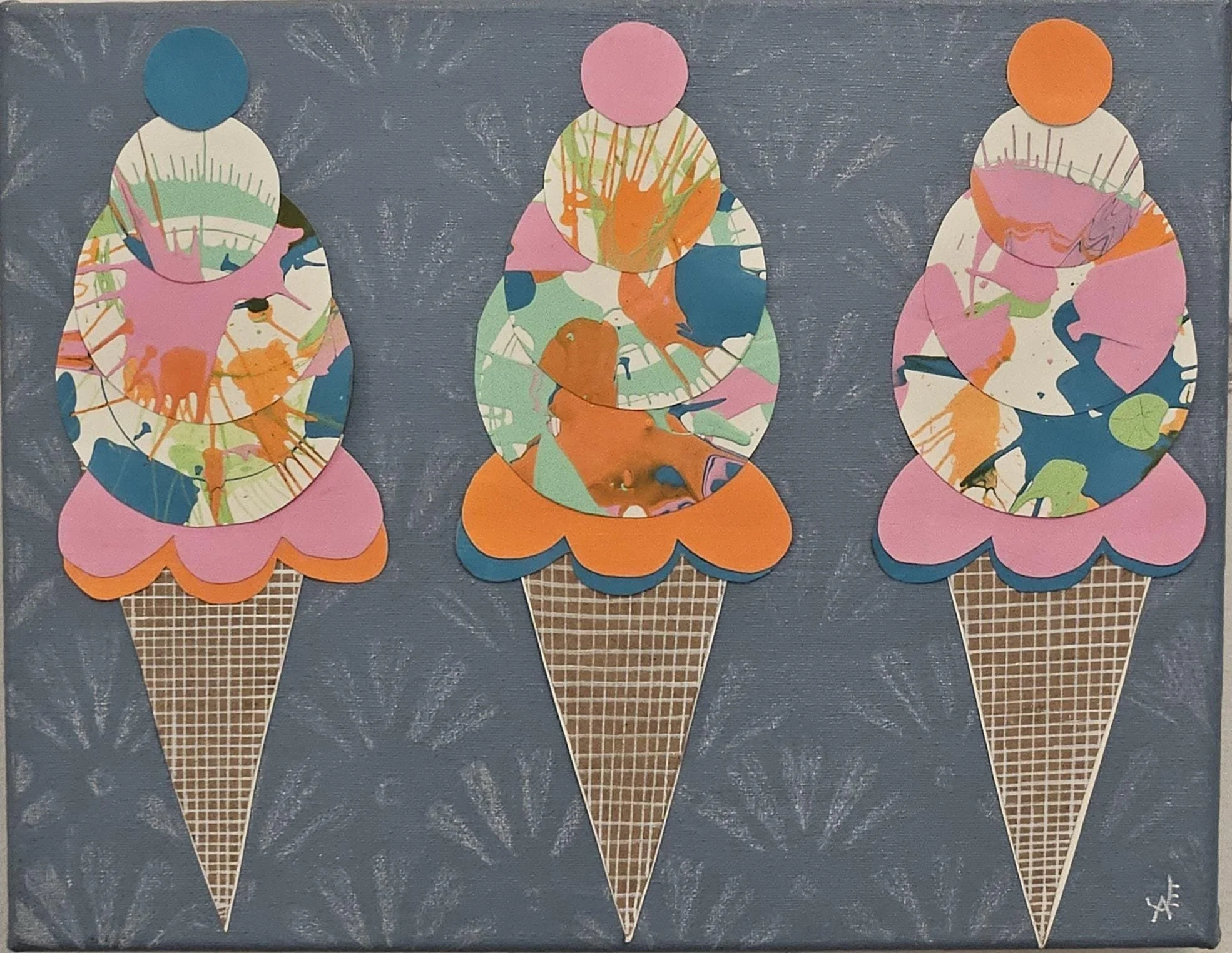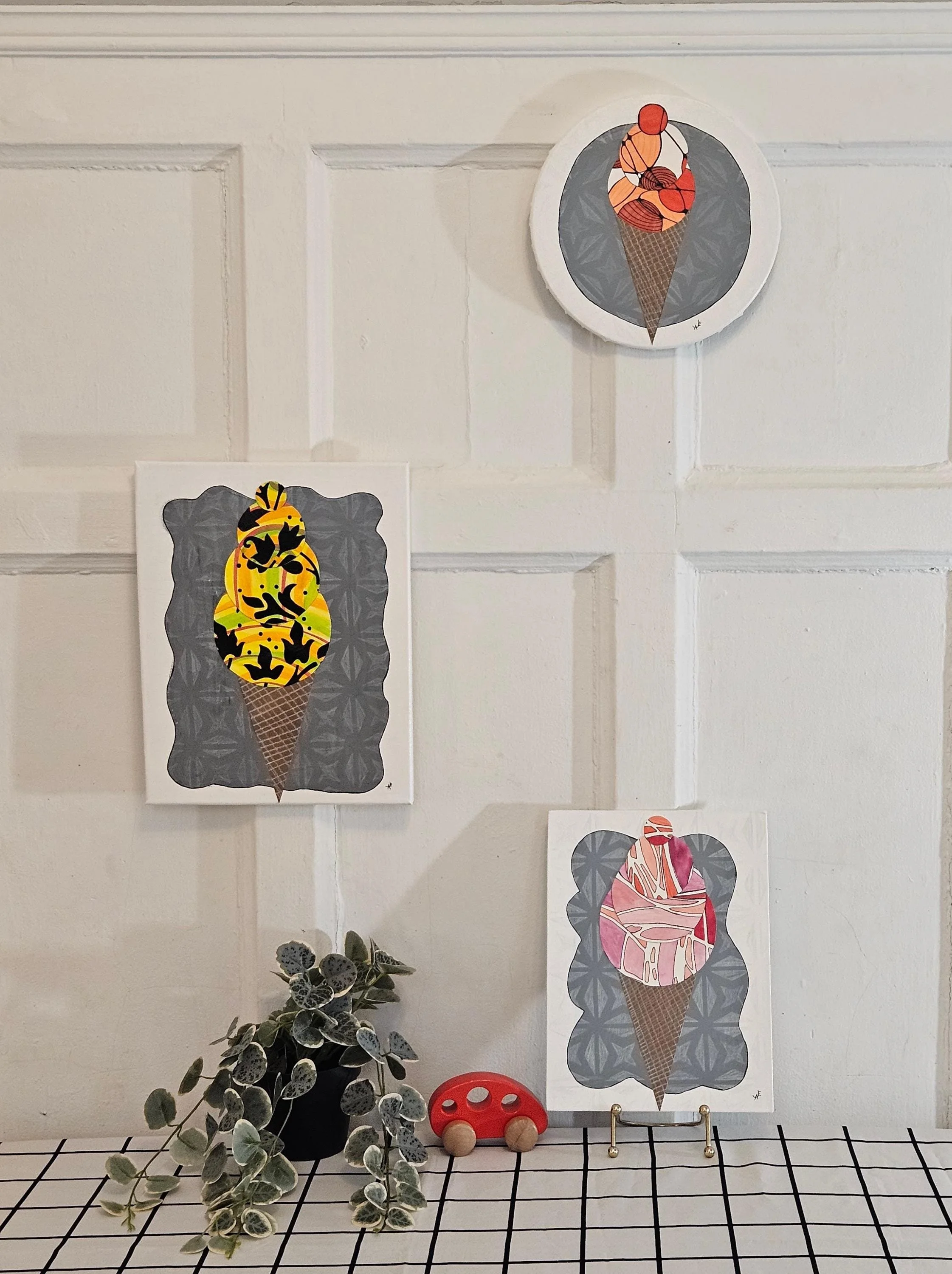 The Sweet Scoop Series Categories: Select a Category Alcohol Ink The Sweet Scoop Series Acrylic paintings Paint Pour Spin Art The Sweet Scoop Series The Triple Treat- Three Ice Cream shaped, original art on circle canvas- 10 inch diameter-ready to hang-colorful art- bedroom, kitchen, etc. $300.00 Add To Cart Added! Sugar & Swirl- original art- Ice Cream Cones on a rectangular canvas (14 inch width x 11 inch height) Fun, whimsical, kid's rooms, kitchens $150.00 Add To Cart Added! The Cone and Color Club-Three paintings of Ice Cream Art (2 rectangle-11"x14" & 9"x12", a 10"circle) sold as a set-fun, whimsical, nostalgia $300.00 Add To Cart Added! Have Questions?Fill out the info or email me at joyeahern@gmail.com, and I’ll get back to you as soon as I can.