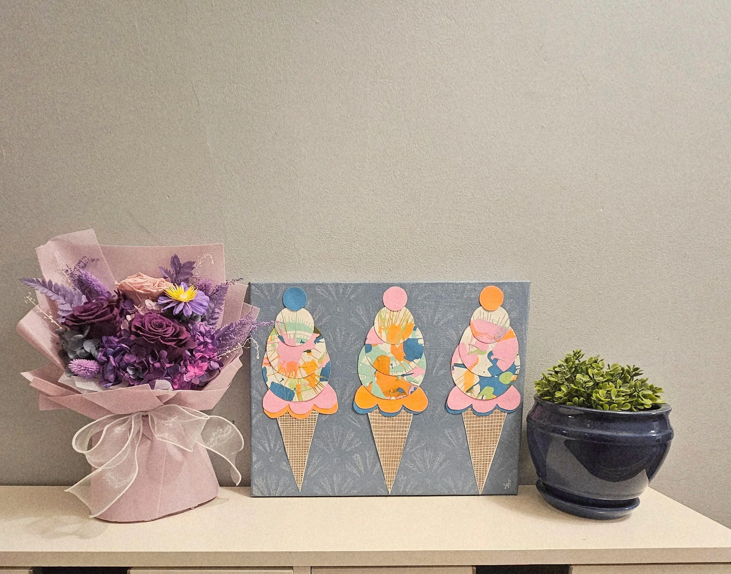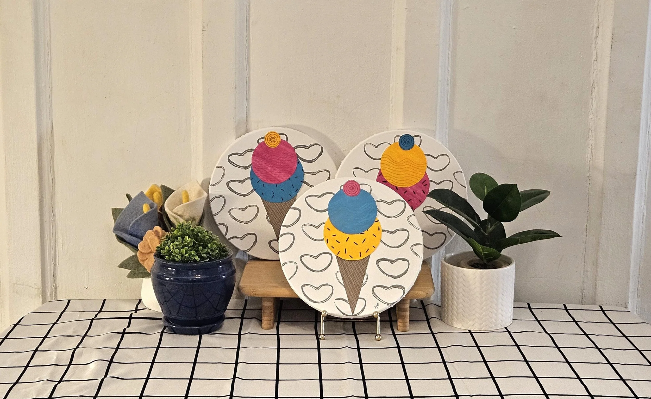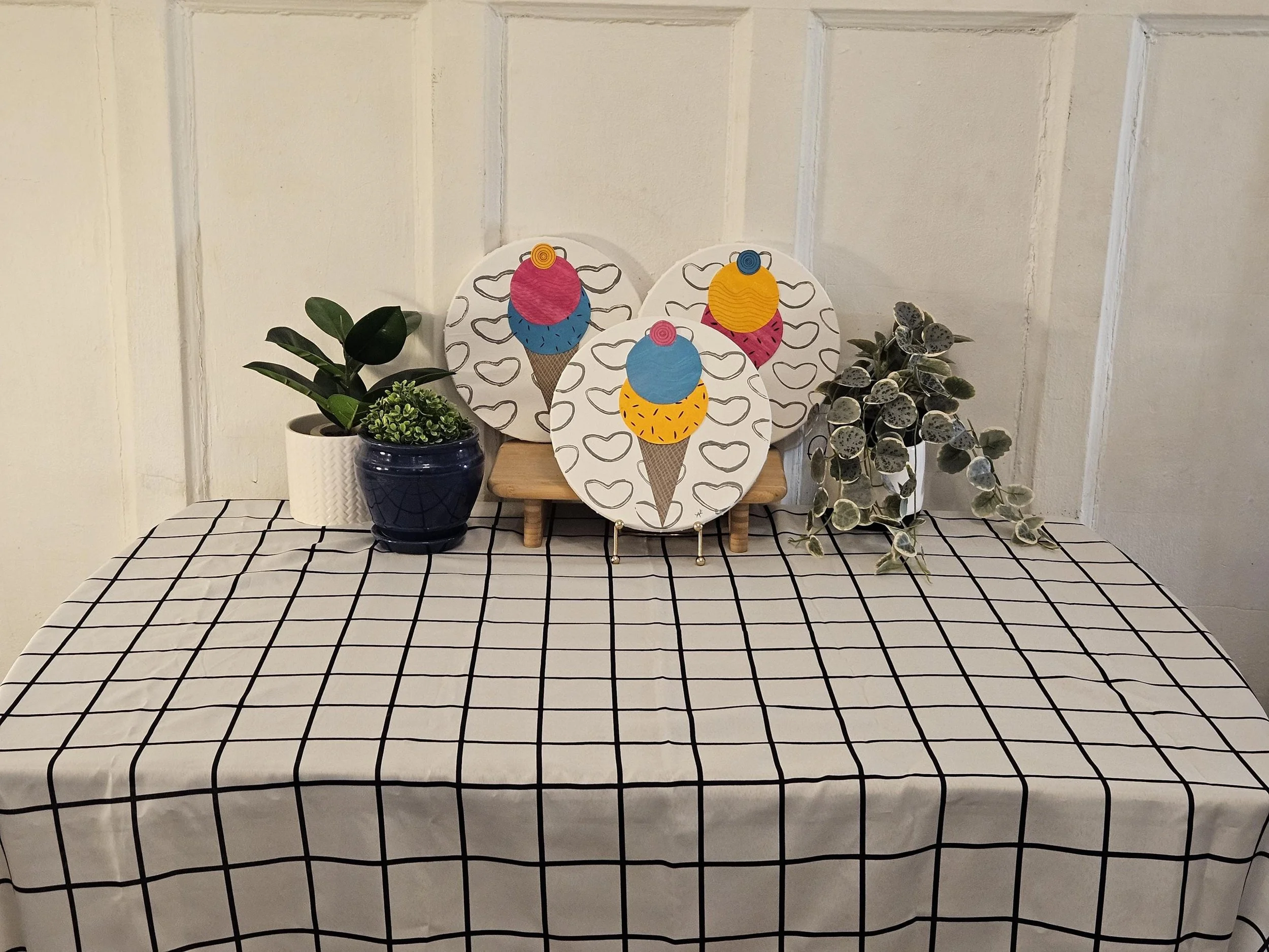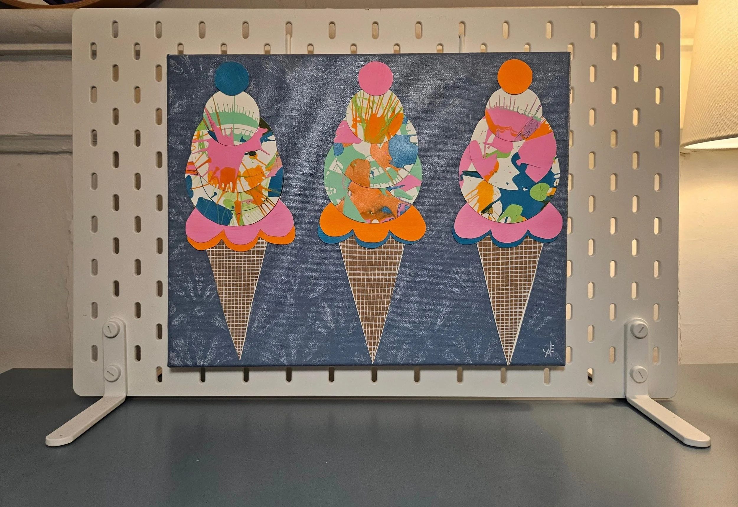 The Sweet Scoop Series Categories: Select a Category Alcohol Ink The Sweet Scoop Series Acrylic paintings Paint Pour Spin Art The Sweet Scoop Series The Triple Treat- Three Ice Cream shaped, original art on circle canvas- 10 inch diameter-ready to hang-colorful art- bedroom, kitchen, etc. $300.00 Add To Cart Added! Sugar & Swirl- original art- Ice Cream Cones on a rectangular canvas (14 inch width x 11 inch height) Fun, whimsical, kid's rooms, kitchens $150.00 Add To Cart Added! The Cone and Color Club-Three paintings of Ice Cream Art (2 rectangle-11"x14" & 9"x12", a 10"circle) sold as a set-fun, whimsical, nostalgia $300.00 Add To Cart Added! Have Questions?Fill out the info or email me at joyeahern@gmail.com, and I’ll get back to you as soon as I can.
